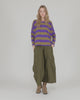 - סריג כותנה בדוגמת פסים רחבים, המוצגים לעיתים לאורך ולעיתים לרוחב, ליצירת משחק ויזואלי
