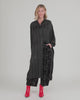 - שמלת מידי בעלת גזרת אוברסייז המתרחבת בהדרגה לכיוון המכפלת