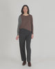 - חולצה משוחררת בעלת צללית מעוגלת במקצת, ההולכת וצרה כלפי הירכיים