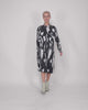 - בד טכנו מתקדם בעל איכויות טכנולוגיות ייחודיות עם פרינט אבסטרקטי בצבע שחור ולבן